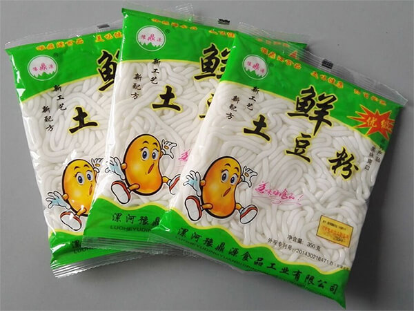 ①.半自動土豆粉丝瓜视频污污污污:土豆粉包裝可以采用半自動定量稱重與人工包裝,需要用人工稱重後把濕粉條放入料鬥內,丝瓜视频污污污污自動包裝,設備投資較小不但可以用於濕土豆粉的包裝還可以用濕米粉、濕麵條的包裝。