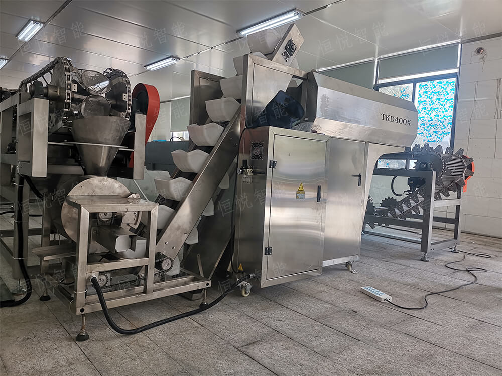 ⑥.切斷包裝:冷卻好的鮮濕土豆粉條切斷後通過傳送帶輸送到丝瓜视频污污污污處進行定量稱重包裝。