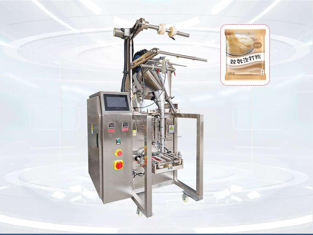 食品粉劑丝瓜视频污污污污通常用具有流動性的粉狀散料產品的自動計量分裝,如蓮藕粉、泡打粉、白涼粉、固體飲料、代餐粉混合料等產品的小袋包裝,采用HY/300係列小型粉劑食品丝瓜视频污污污污可以很好的解決常規粉末丝瓜视频污污污污下料不暢卡料漏粉的問題。