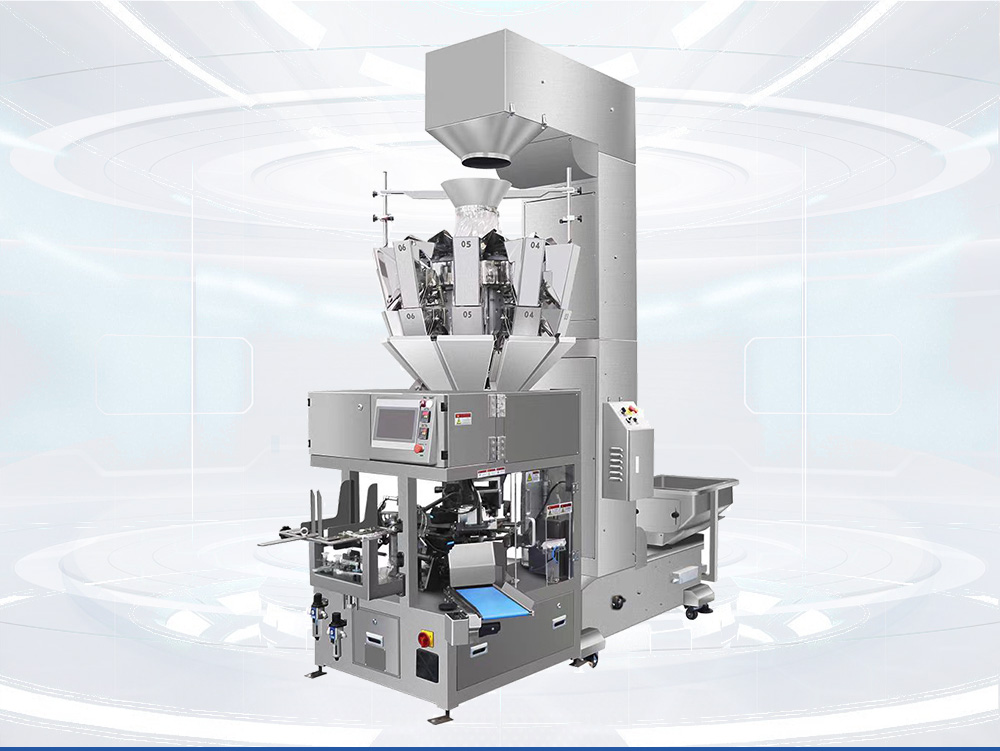 小型給袋機適用於各種固體顆粒、條塊、片球、粉末、液體、膏體、醬料產品的預製袋精美包裝。